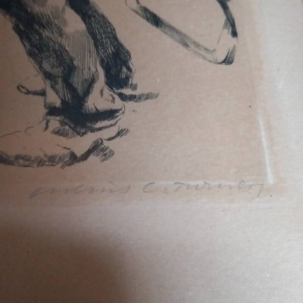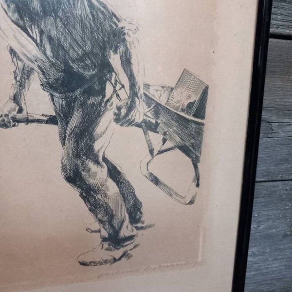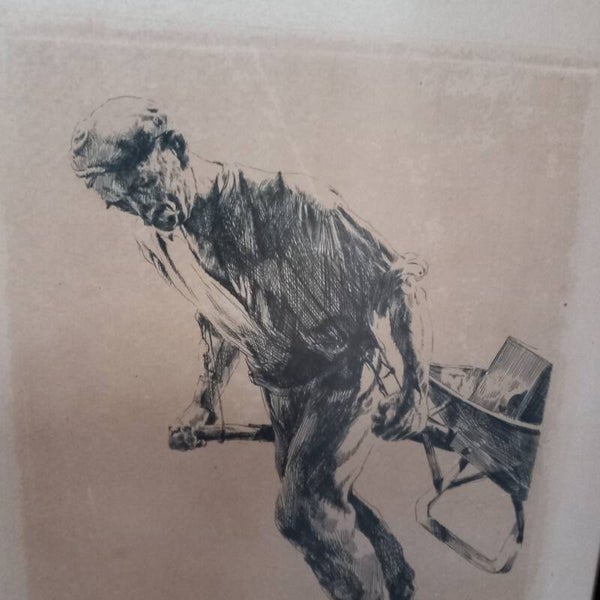 Pentekening van arbeider, is gesigneerd.