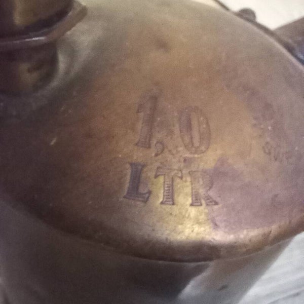 Antieke koperen petroleumbrander, inhoud vaatje 1 ltr.