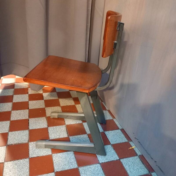Dit stoeltje is onverwoestbaar; uw kind zal het niet kunnen beschadigen, en zelfs de volgende generatie niet. Het heeft een massieve houten zitting en rugleuning, en een robuust metalen frame.