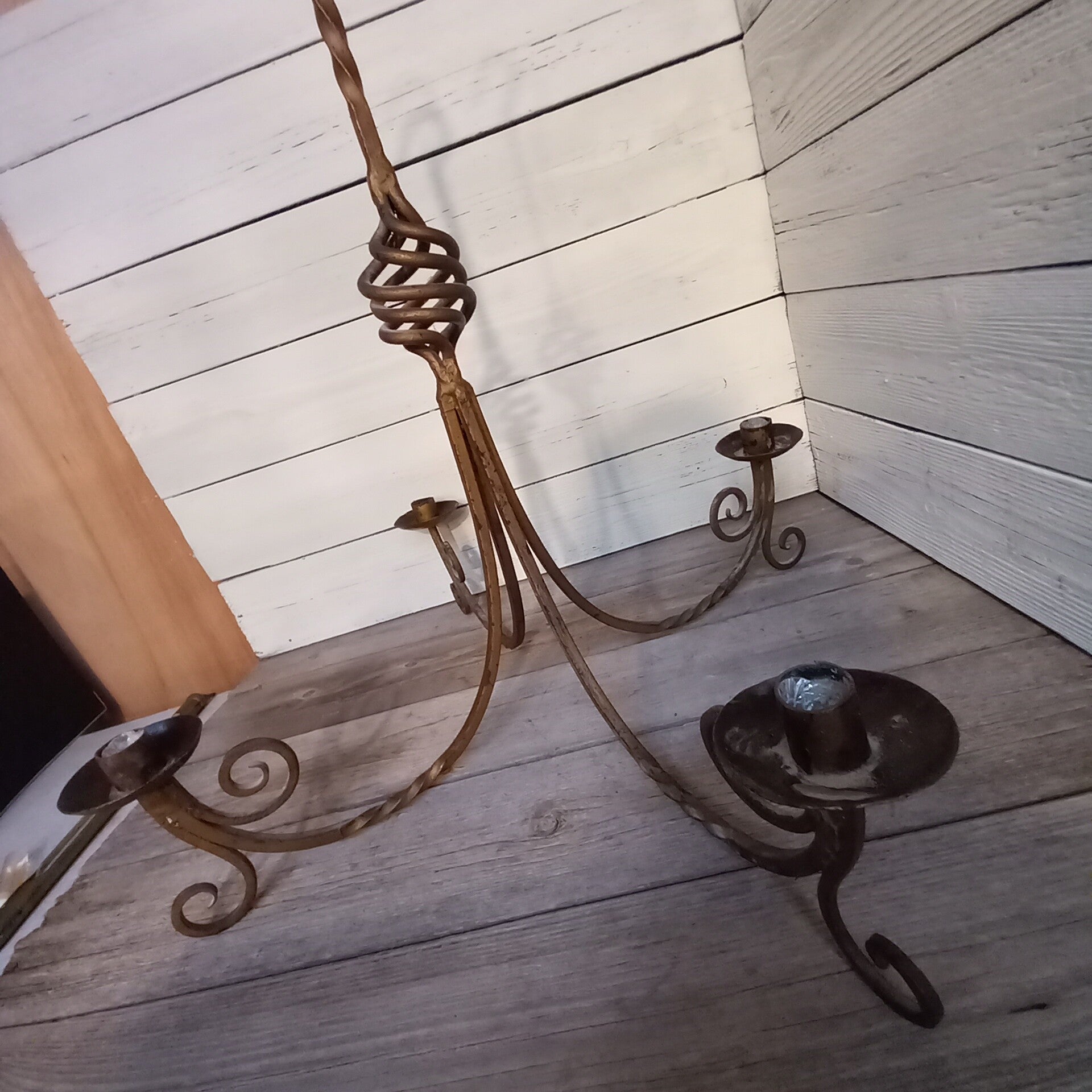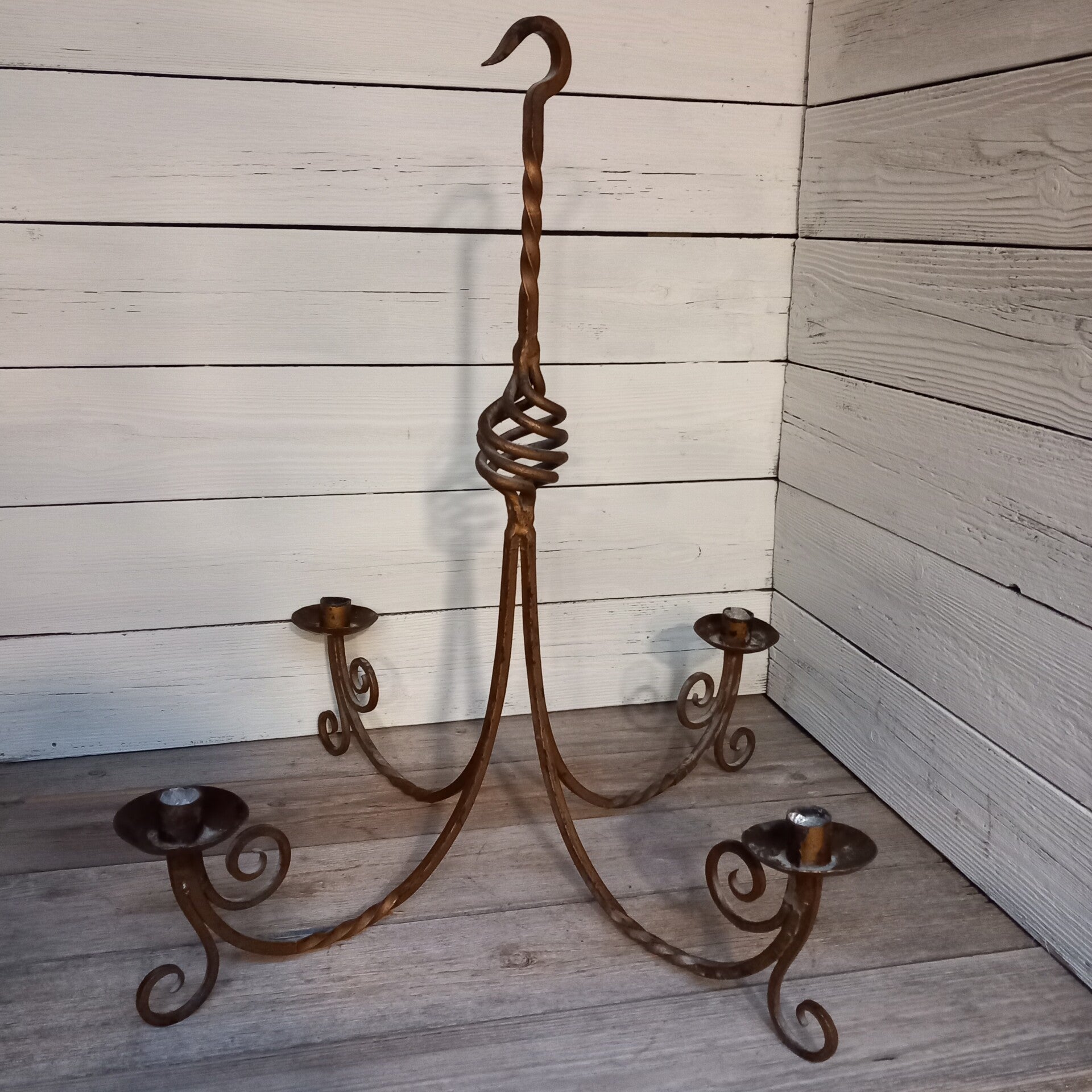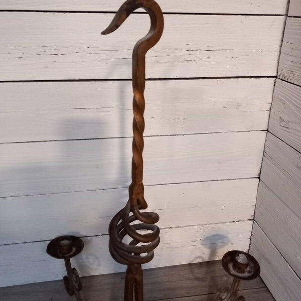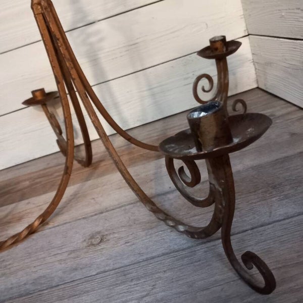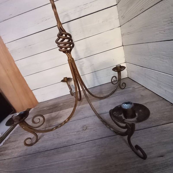 Prachtige authentieke smeedijzeren kroonluchter, nostalgisch handwerk en sfeermaker.