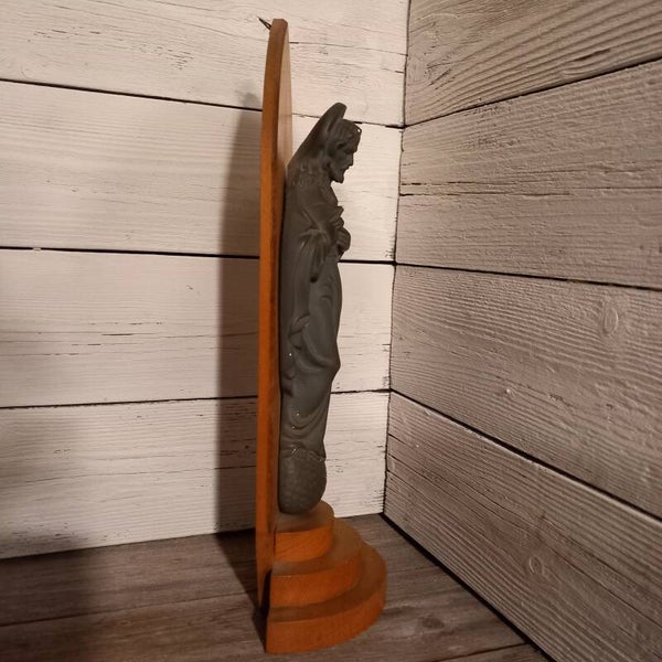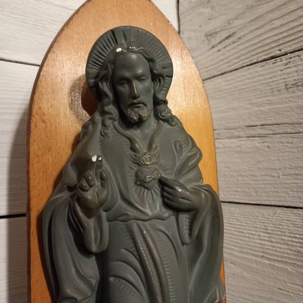 Mooi gestileerde console met daarop op antracietkleurig heilg hart beeld. Met haakje om het geheel op te hangen.