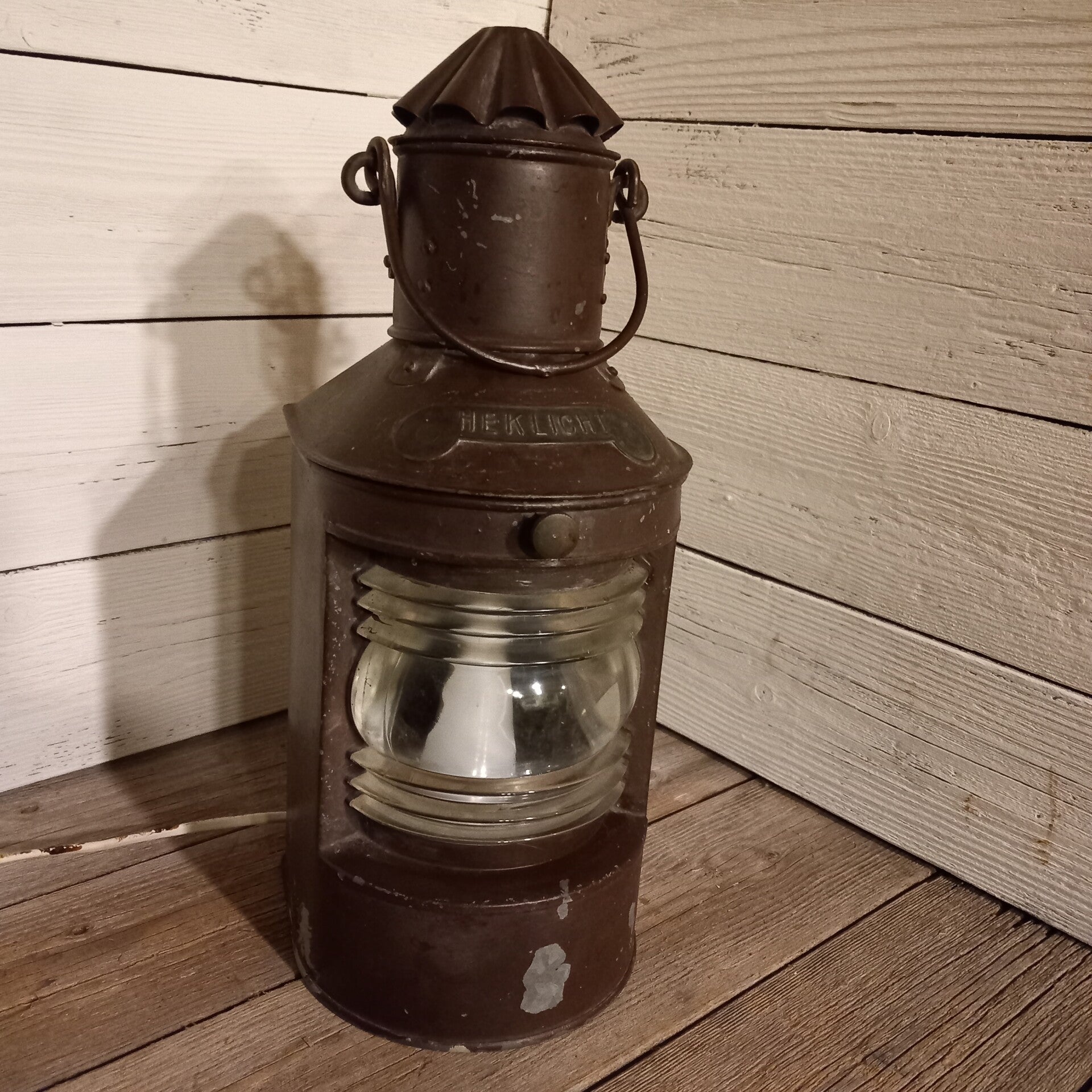 Authentiek oud heklicht, uit de scheepsvaart, electrisch gemaakt en werkend.