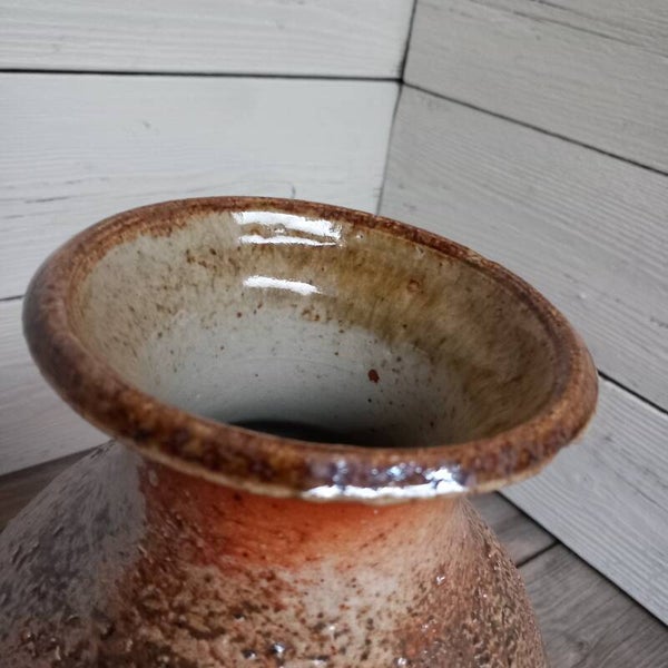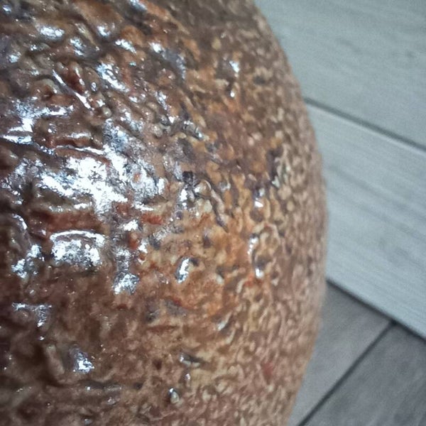 In natuurlijke tinten en met een grover oppervlak, en geglazuurd aan de buitenzijde.