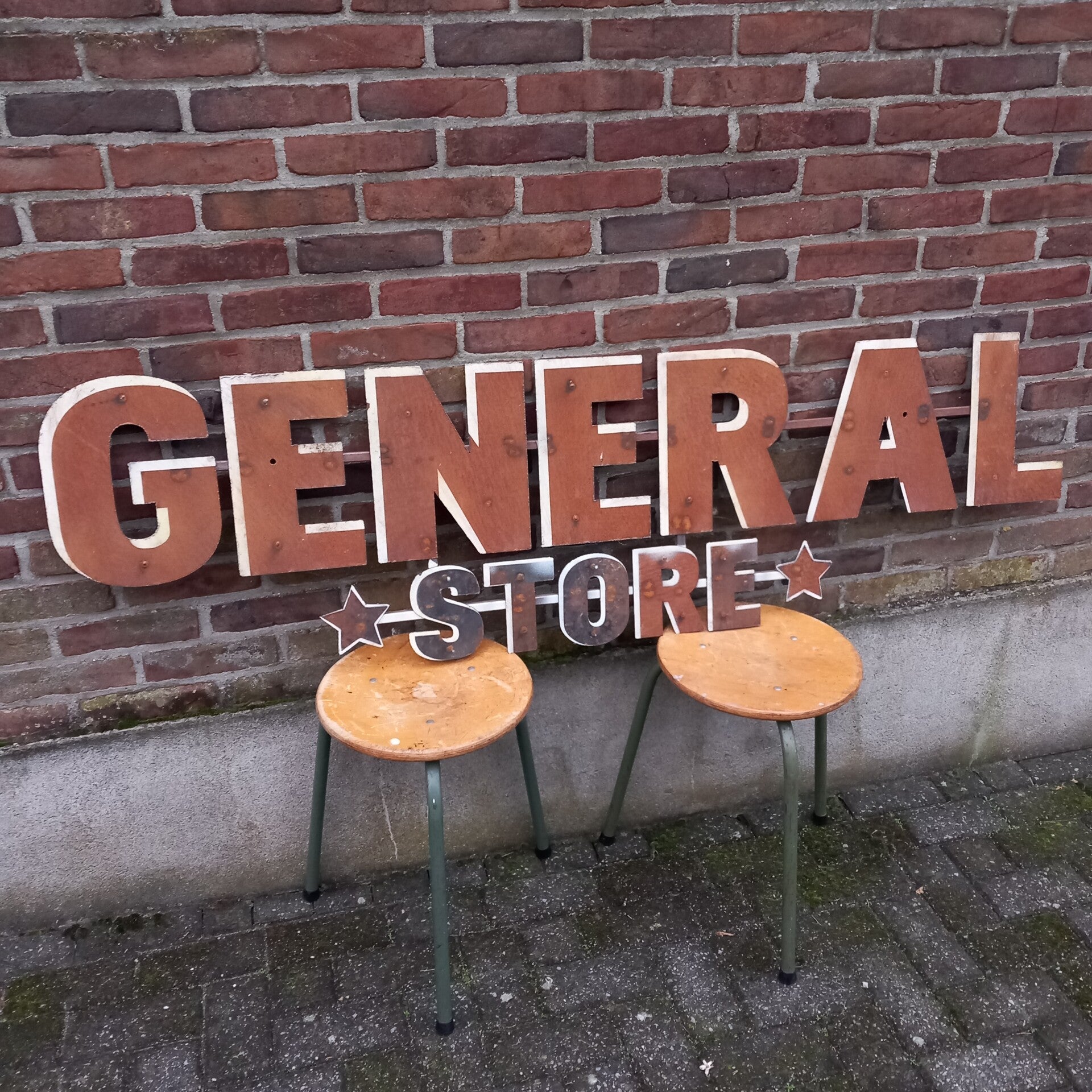 Mooi groot industrieel metalen bord "GENERAL STORE".