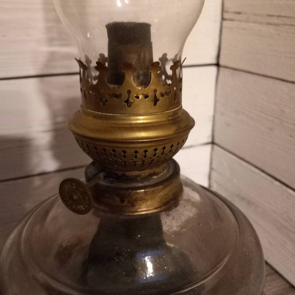 Mooie puntgave glazen petroleumlamp.