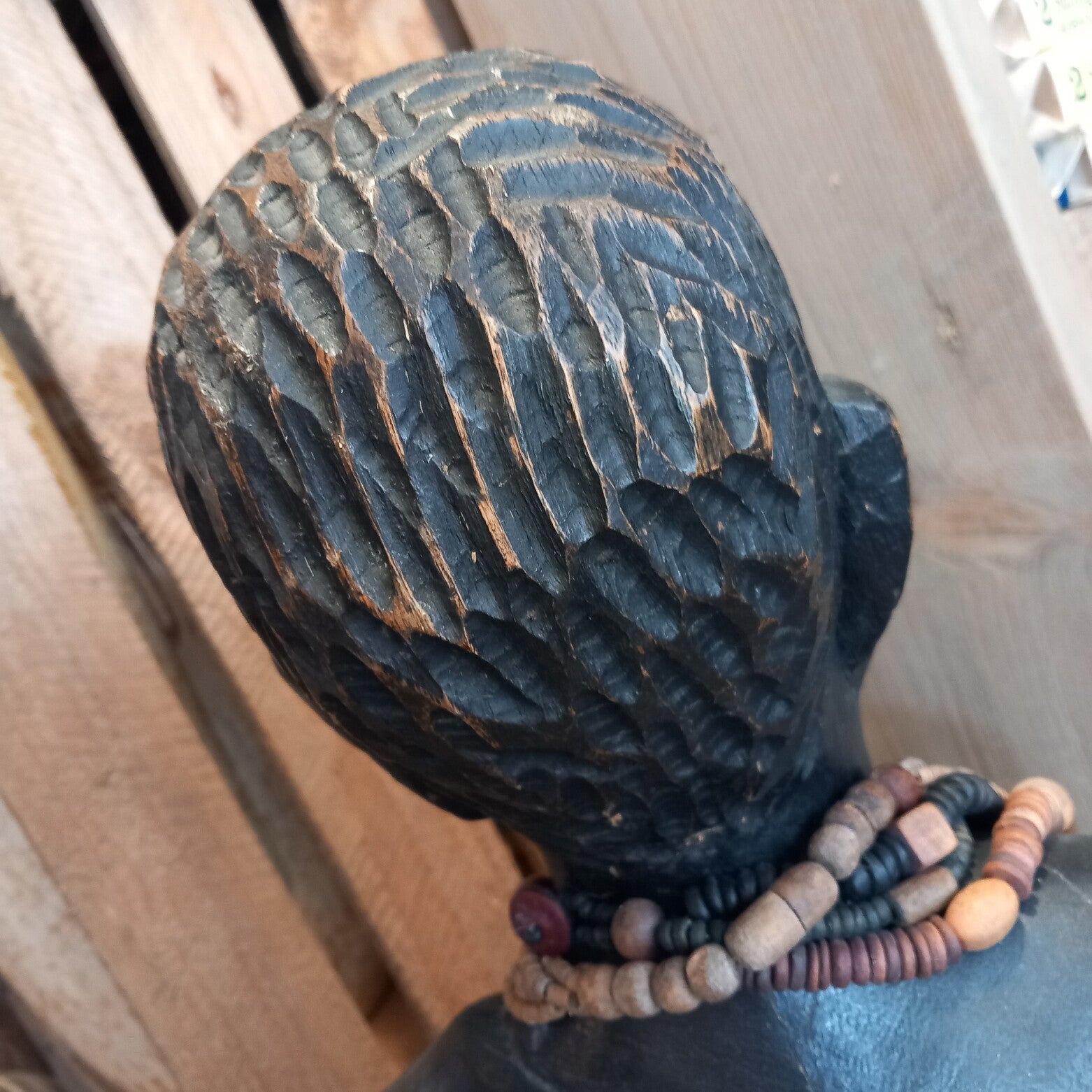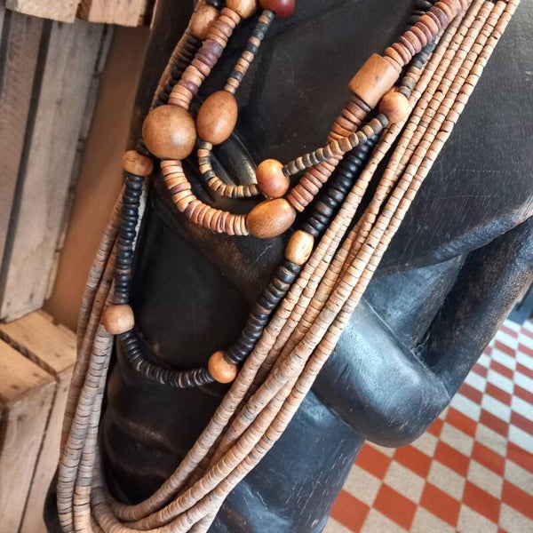 Groot houten Afrikaans beeld met prachtige kralenkettingen, hoogte 125 cm !
