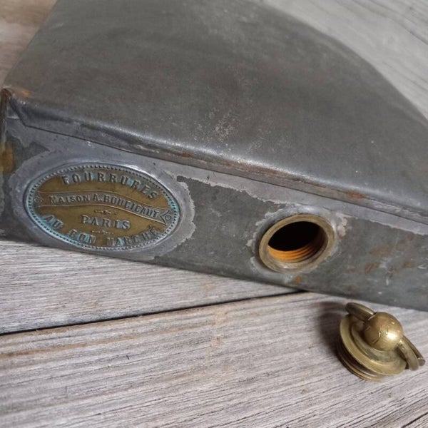 Antieke Franse zinken waterkruik / voetenwarmer, van Maison A. Boucicaut
