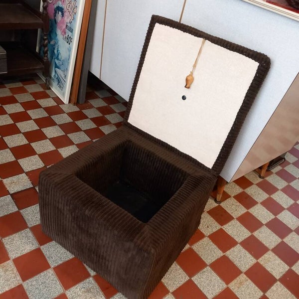 Vintage ribfluwelen / corduroy poef met opbergruimte.